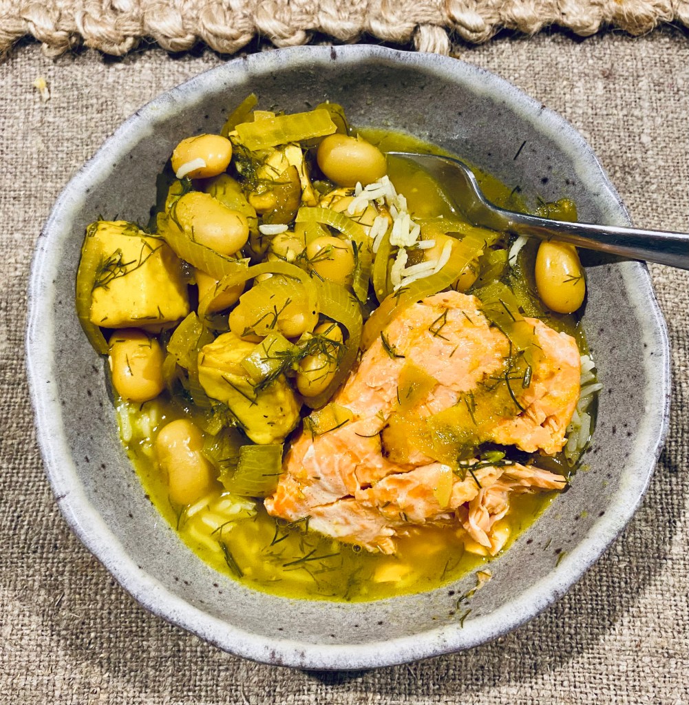 The turmeric, onion, garlic and dill are awesome antimicrobial and anti-inflammatory ingredients, so this meal also has secret powers to soothe your digestion and support detoxification.